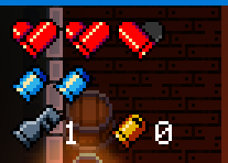 分别是血量、空响弹(游戏中的一种特殊道具)、钥匙以及金钱。首先查找血量所在的地址,简单游玩之后可以发现每次受到伤害,血量会减少一半: