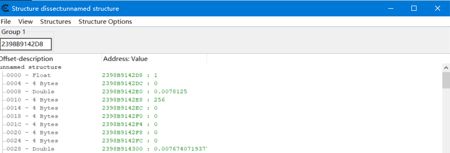 首先找到血量所在的地址,将它添加到列表中,然后右键选择 Browse this memory region 选项,弹出一个窗口,选择 Tool 选项卡中的 Dissect data/structures,弹出另外一个窗口,选择 Structures 选项卡中的 Define new structure,默认选项 ok 即可。