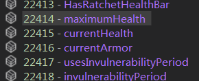 左侧会显示出变量的正确定义顺序(默认情况是字母排序),可以发现在 currentHealth 下方就是 currentArmor ,并且还有 maximumHealth 等